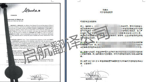 加拿大使館認證阿爾伯特省政府認證翻譯樣本