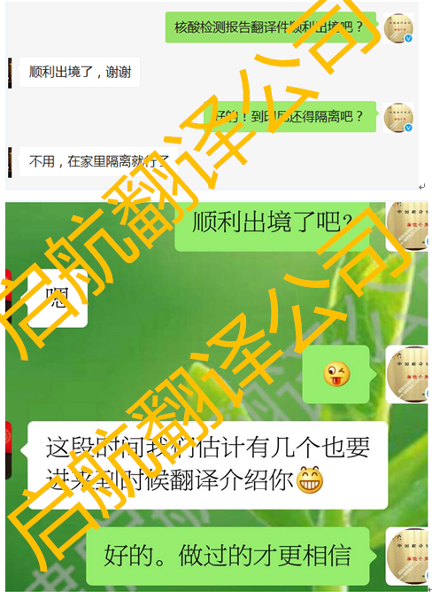 拿到檢驗報告,發給啟航翻譯公司,我們為各位出境旅游、務工、商務等人士提供新冠病毒檢測報告的翻譯和蓋章認證,公司具有專業翻譯資質,翻譯專用章在各出入境中心、海關均有法律效力。國內大部分醫院或檢測機構是無法提供報告英文版的。經我司翻譯蓋章后,無需再到醫院去蓋章!