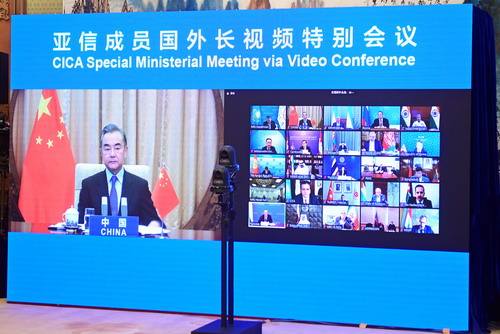 It is my great pleasure to attend the CICA Special Ministerial Meeting via video conference. Given the complex changes taking place in our region and around the world, it is all the more necessary and important for us, members of the CICA family, to have timely communication, build consensus, map out cooperation and chart the course forward.