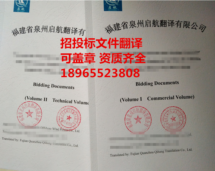 標書翻譯蓋章裝訂成冊 最終提交客戶的翻譯成果樣本(招標文件:商務卷、技術卷)